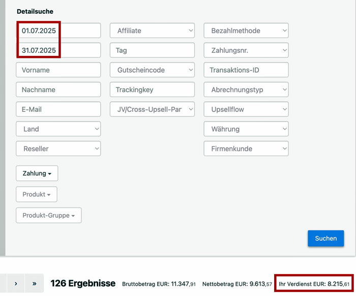 Daher hier ein Screenshot aus einem meiner Zahlungsanbieter, der meine Einkünfte im Juli 2025 mit dem Verkauf digitaler Produkte zeigt.