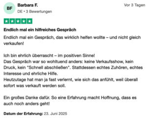 Und das sagen sie auf der Bewertungsplattform TrustPilot über mich: