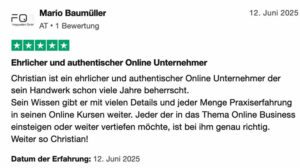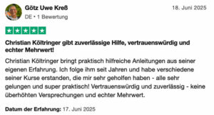 Hi, ich bin Christian Költringer und ich verdiene seit 2016 meine Brötchen ausschließlich im Internet (google gerne nach meinem Namen).